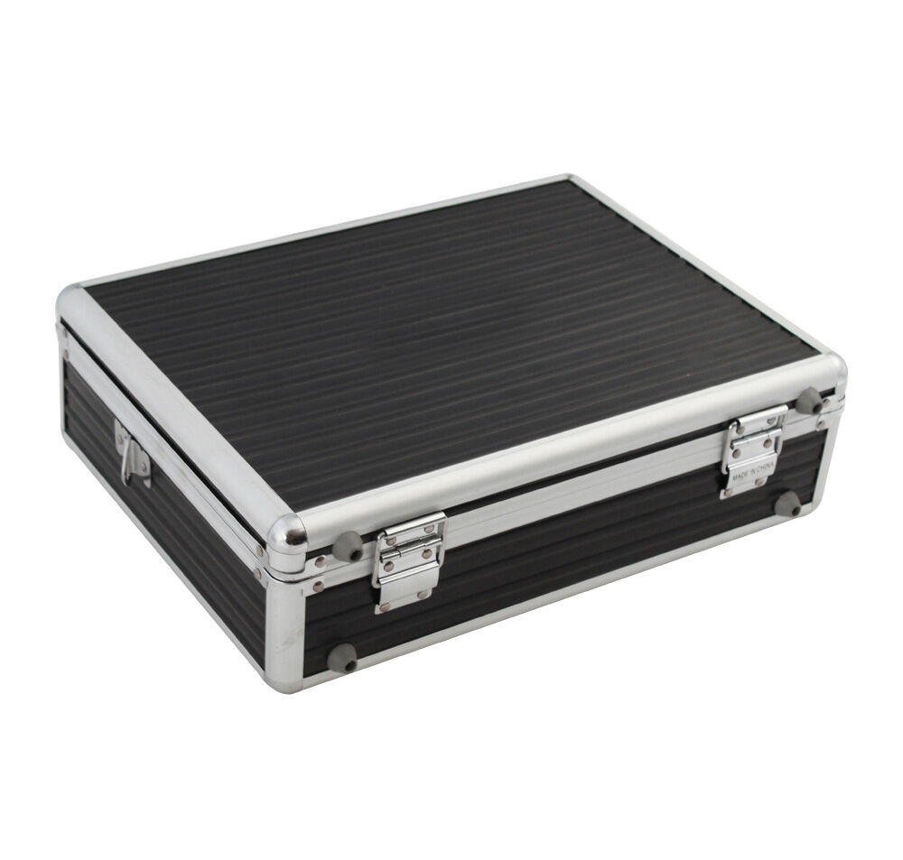 Equipped with metal corner protectors to reinforce the case against impacts, a secure metal lock, a comfortable handle for easy carrying, and customizable foam interior.